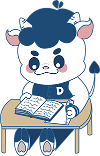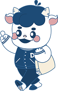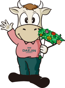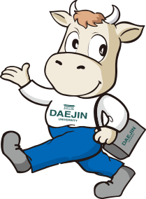 This mascot character was created by anthropomorphizing Daejin University's symbolic animal, the cow. It looks cute and naive on the outside, but on the inside, it shows the image of a confident, energetic, and responsible university student. This mascot will represent Daejin University in a friendly and characteristic way.